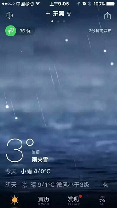 東莞今天早上的最低溫度降到2度,而東莞也迎來了124年來的第一場雪,從今天凌晨開始,全市各鎮(zhèn)街都出現(xiàn)了雨夾雪天氣。今天下午三點,市氣象局將寒冷預警信號升級為紅色,提醒廣大市民做好極寒天氣下的防御工作。